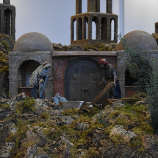 El Belén hebreo, con bellas figuras de las artesana Montserrat Ribes, en la Casa Grande de la Constitución.